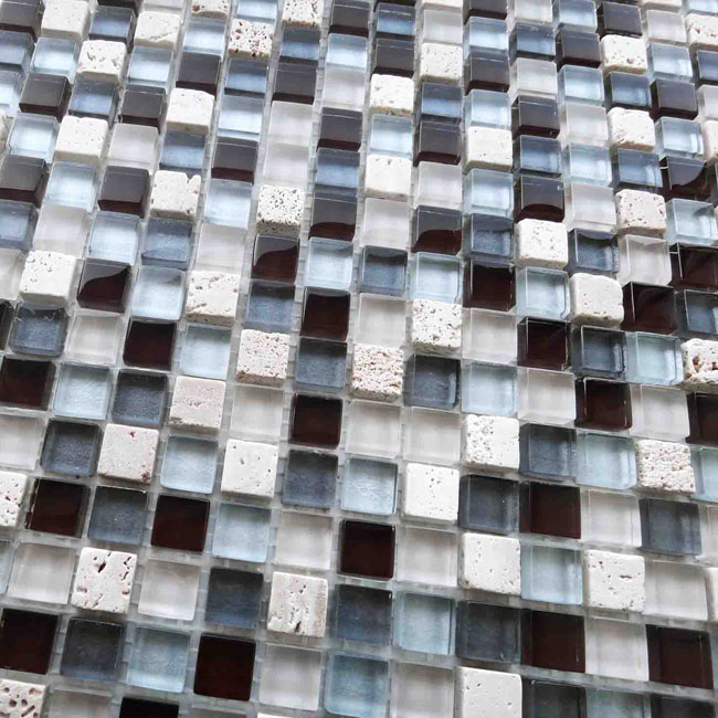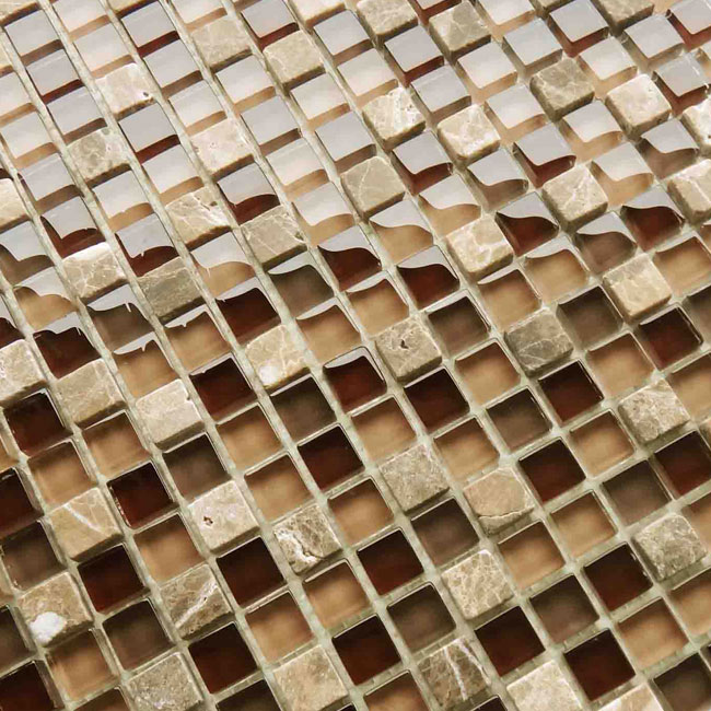 Мозаика Naturelle – смесь толщиной 4 или 8 мм из стекла с прокрашенной основой и натурального камня. В стекле есть разновидности: кроме обычных глянцевых чипов, имеются чипы из матового стекла, битого стекла (эффект «краклè»), рельефного и эмалированного стекла. В натуральном камне есть разновидности: камень, окрашенный металлизированной краской; камень с нанесением узора по технологии «холодной печати» и последующей окраской.