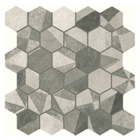 декоративная мозаика; керамический гранит; с шестиугольным форматом смальты (чипа) 5,3х6,1 мм; толщина керамогранитной плитки 10 мм; в упаковке 6 штук или 0,54 кв.м; вес упаковки 10,2 кг