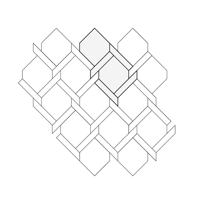 декоративная мозаика шестиугольная, керамические плиты из керамогранита, полученные методом двойной загрузки - группа BIa UGL, ректификат, толщина керамогранитной плитки 6,5 мм; в упаковке 5 штук или 0,48 м²; вес упаковки составляет 7,30 кг