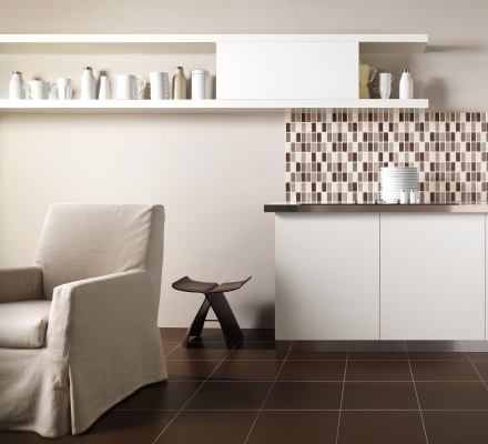 Облицовочная настенная керамическая плитка для ванных комнат Vertigo от Polis Ceramiche выполнена в нейтральных цветах и дополнена оригинальными декоративными элементами.