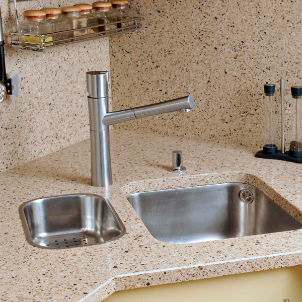 Практичное решение этого вопроса – столешницы из агломерата. Богатая цветовая гамма позволяет подобрать оттенок для любого интерьера кухни. Как известно, спрос рождает предложение, а согласно статистике, за последние несколько лет в несколько раз вырос интерес производителей кухонь к кварцевому агломерату, оптимально сочетающему в себе функциональные и декоративные свойства.