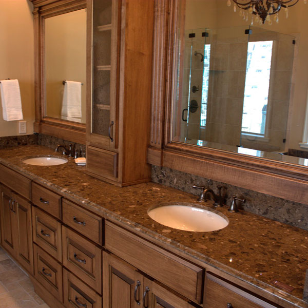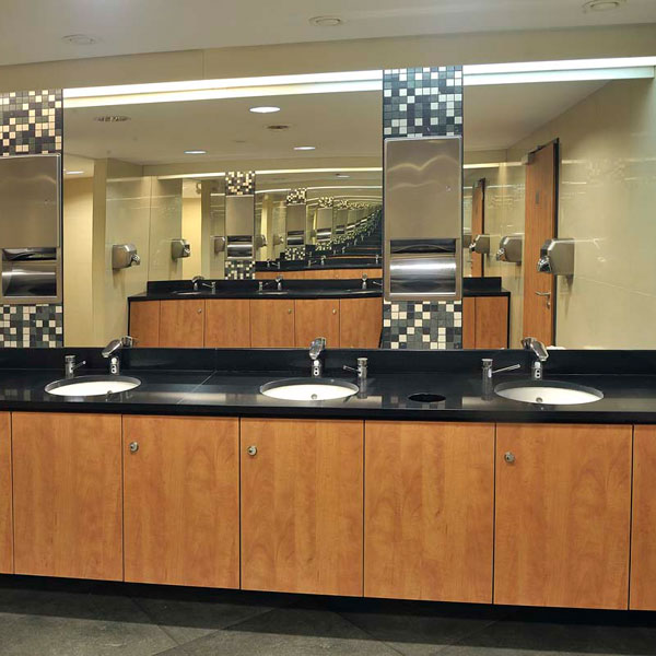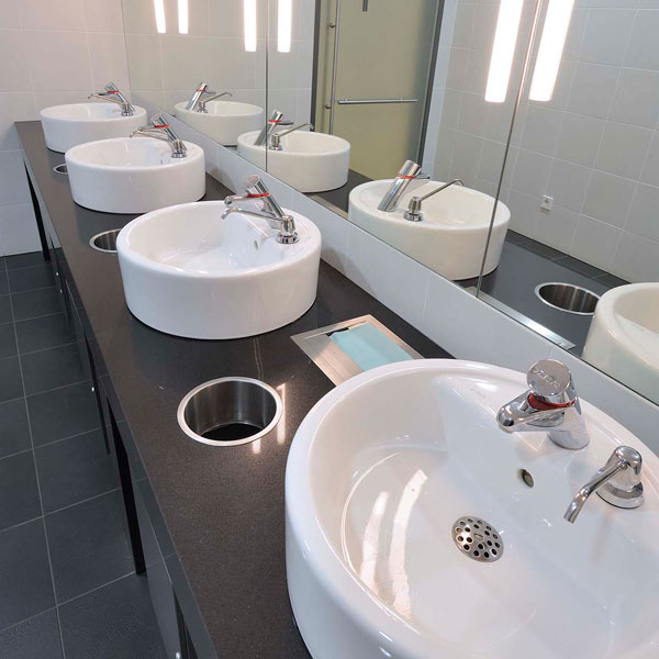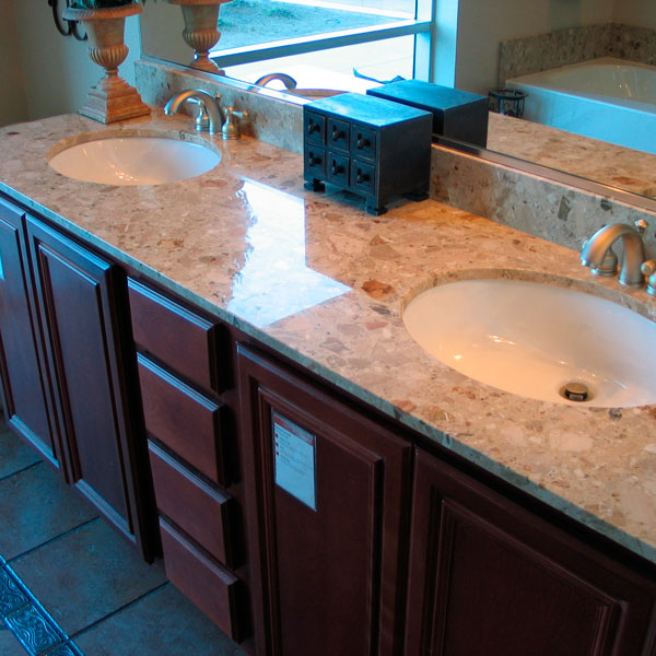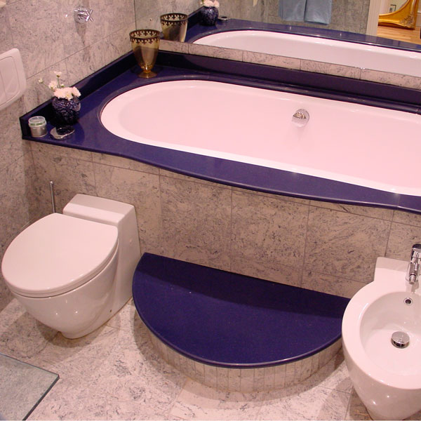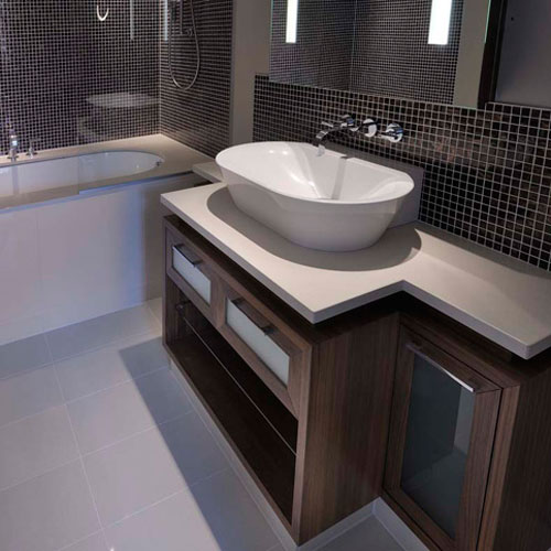 Поверхности из агломерата для раковин в кухнях и ванных комнатах.