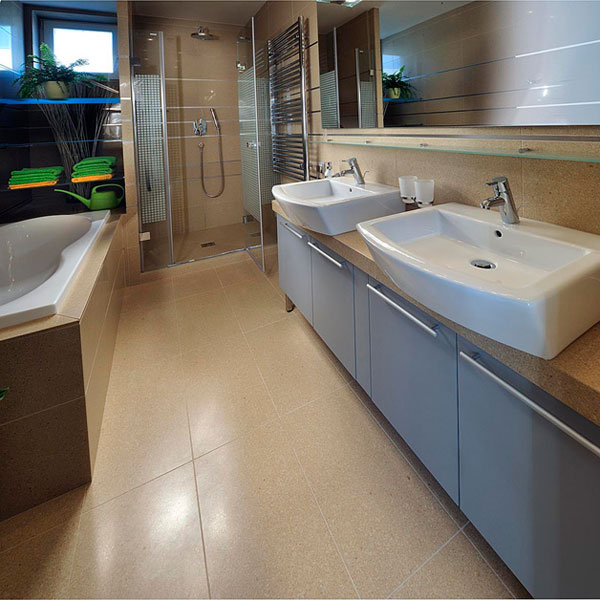 Кварцевый агломерат позволяет проливать на себя кофе, чай, соки, вино, не заботясь о следах. Акрил такого не позволит. И, кроме того, агломераты обладают отличными эксплуатационными показателями в условиях пара, постоянной влажности, повышенной температуры. Кварцевый агломерат на 95% состоящий из кварца, не впитывает влагу, не набухает, не трескается, а значит – долгое время будет радовать глаз ощущением новизны. Грибы и плесень не уживаются на идеально отполированных поверхностях. А натуральная красота кварцевого камня, глянец и гладкость поверхности изделий из него придадут интерьеру ванной комнаты элегантность и шик римских терм.